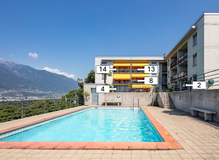 Die Residenza «Rozzolo» liegt auf halber Hanghöhe in Richtung Orgnana. Das Haus bietet eine traumhafte Sicht über das Naturschutzgebiet «Bolle di Magadino». Zum Haus gehört ein eigenes Schwimmbecken, welches zum ungestörten Baden einlädt. Auch ein grosszügiger Gartensitzplatz mit Pergola und Grill laden zum Verweilen und zur Erholung ein.